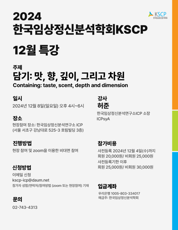 한국임상정신분석연구소ICP 소장이자 공동대표이신 허준교수님께서