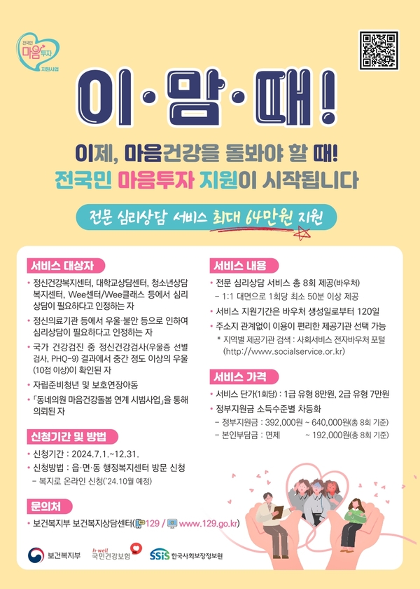 2025년 전국민 마음투자 지원사업 제공기관으로 선정되어