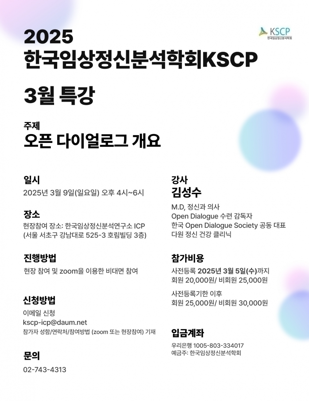 한국임상정신분석학회KSCP 3월 특강 <오픈 다이얼로그 개요>