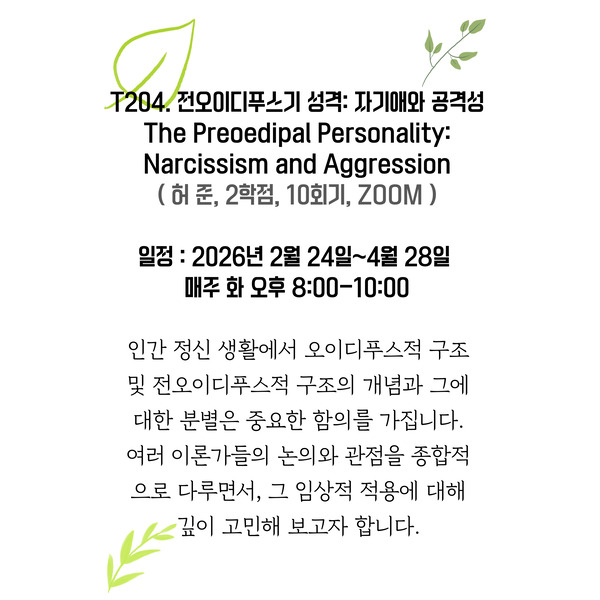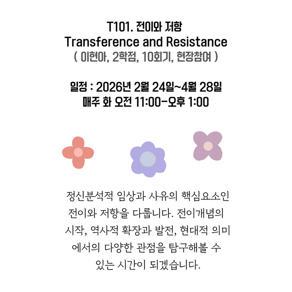 2026년 한국임상정신분석연구소ICP 1학기 수업 안내![]() ![]() ![]() ![]() ![]()