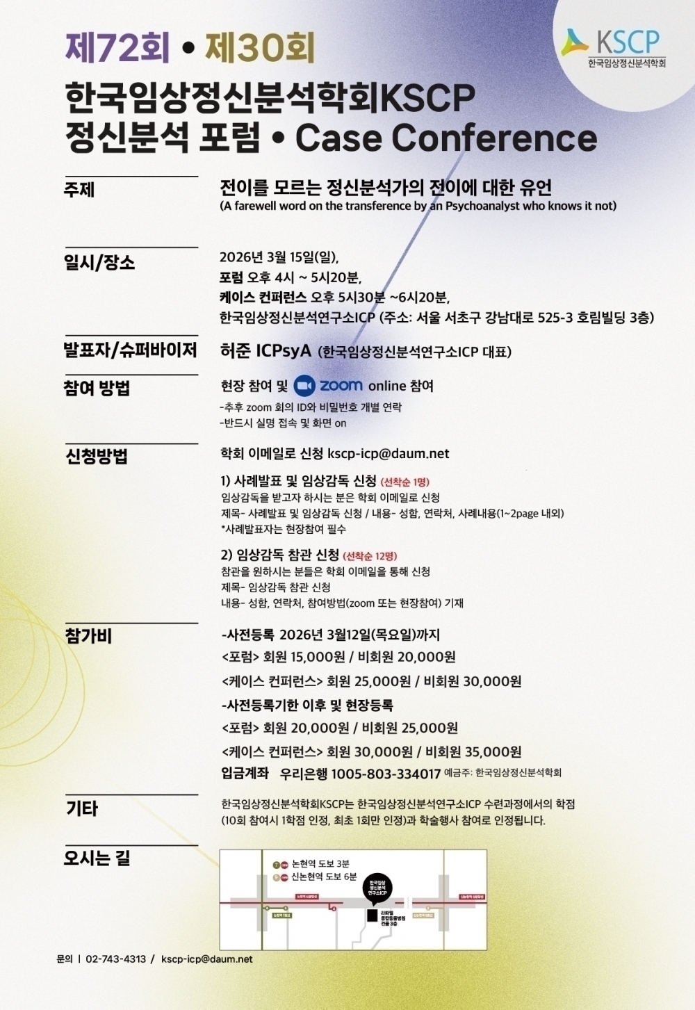 이번 3월 15일 일요일에는 한국임상정신분석연구소ICP의